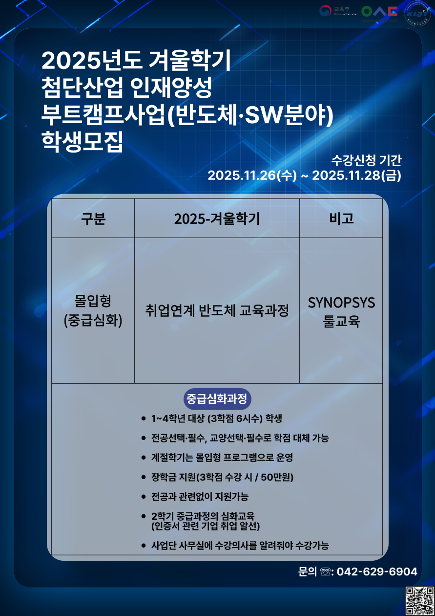 2025년 겨울학기 첨단산업 인재 양성 부트캠프사업(반도체 SW 분야) 학생 추가 모집