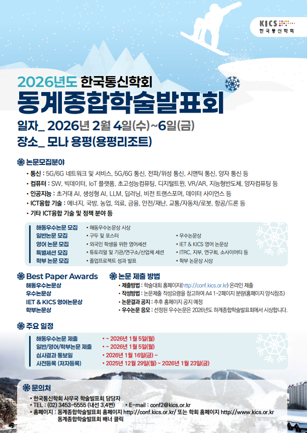 2026년도 한국통신학회 동계종합학술발표회 안내 첨부파일