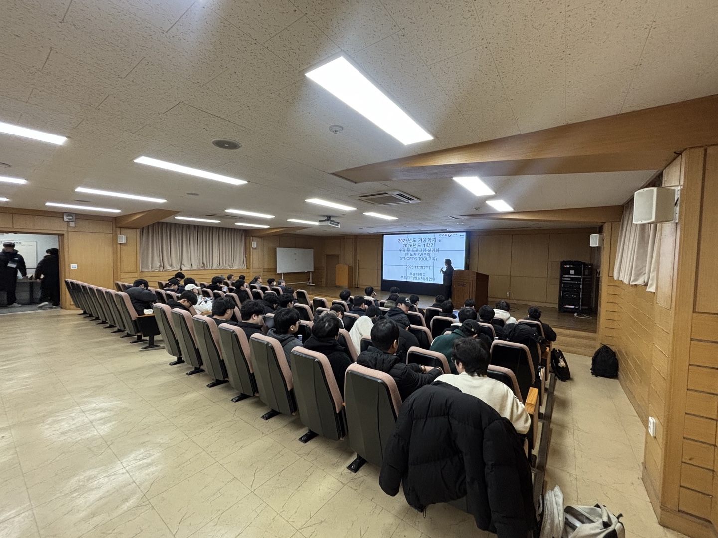 2025.11.19(수)에 W10(사회복지관) 1층 시청각실에서 진행한 2025년도 겨울학기, 2026년도 1학기 수강 및 프로그램 설명회(반도체·SW분야)입니다.